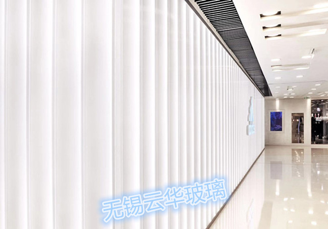選用K25-262*60*7超白細(xì)條紋噴砂U型玻璃