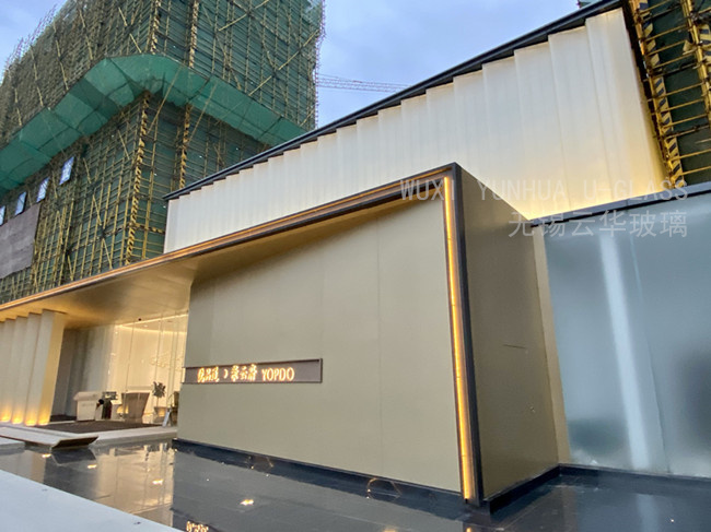 選用無錫云華K32*90*8、K25*90*8超白香梨紋噴砂(定制噴砂1.5KG)