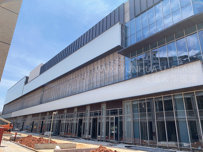 選用無錫云華K25*60*7、K25*90*8超白香梨紋鋼化噴砂U型玻璃
