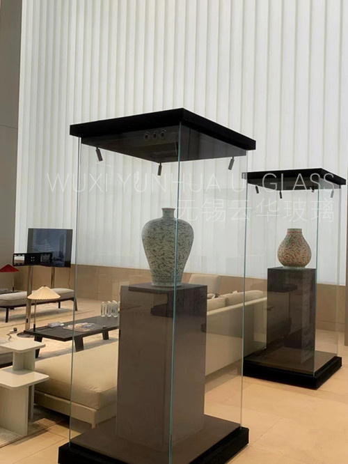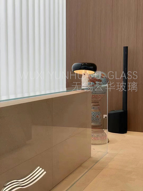 選用無錫云華K25*90*8超白香梨紋噴砂U型玻璃, 約7.6米