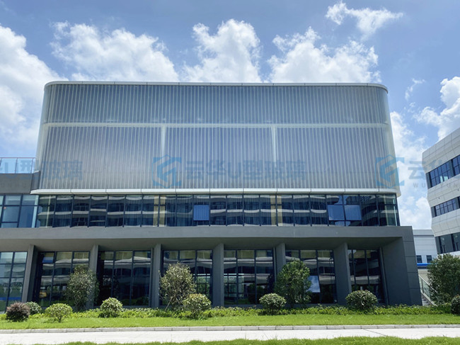 選用無錫云華K25*90*8超白香梨紋U型玻璃