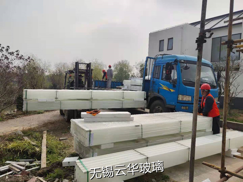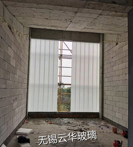 選用無錫云華K25-262*60*7超白香梨噴砂U型玻璃